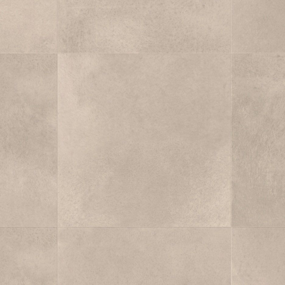Large laminate tiles with subtle V-grooves. Combine the durability of an original tile floor with the practical benefits of laminate.